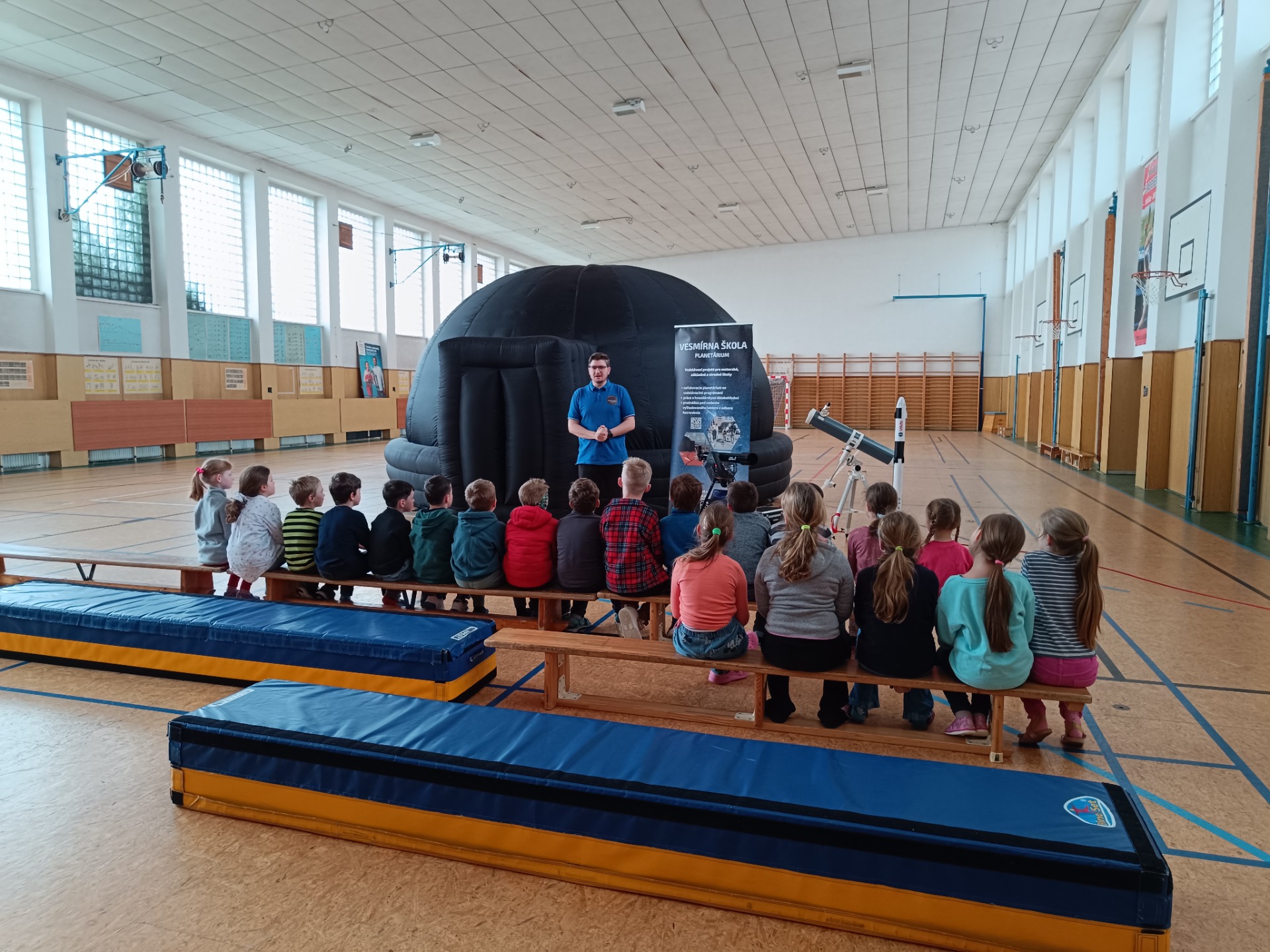 Náš vzdelávací projekt VESMÍRNA ŠKOLA sa skladá z prenosnej hvezdárne a nafukovacieho planetária.